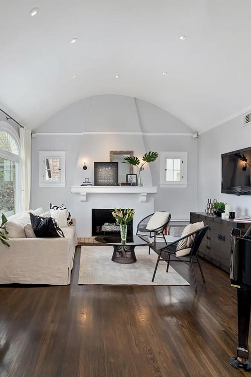 Hedged and gated for complete privacy, this enchanting Country English Traditional blends updated amenities with vintage elements. The elegant living and dining room features soaring barrel ceilings, picturesque floor to ceiling leaded glass windows and patio, classic archways The cheerful kitchen is light and bright with vintage Wedgewood Stove, Caesar stone countertops, breakfast nook and french door that opens to a side patio. There are french doors that lead out from main en suite bedroom and 3nd bedroom/den to covered patio and yard with plenty of room for a pool . The large garage can be converted to an amazing space perfect for home office, gym or guest house. New sewer line and roof. Close to Melrose cafes, shops and coffee shops and the Grove.